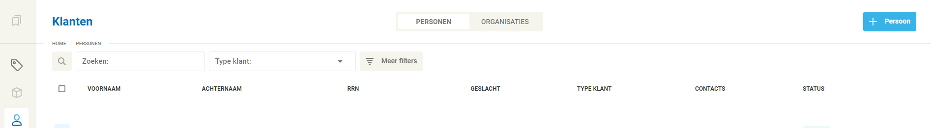 - Ga naar de module Klanten en klik op + Persoon.