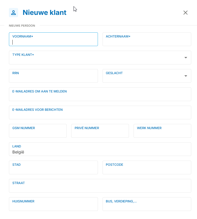 - Vul alle verplichte velden in. Deze velden zijn gemarkeerd met een sterretje (*).