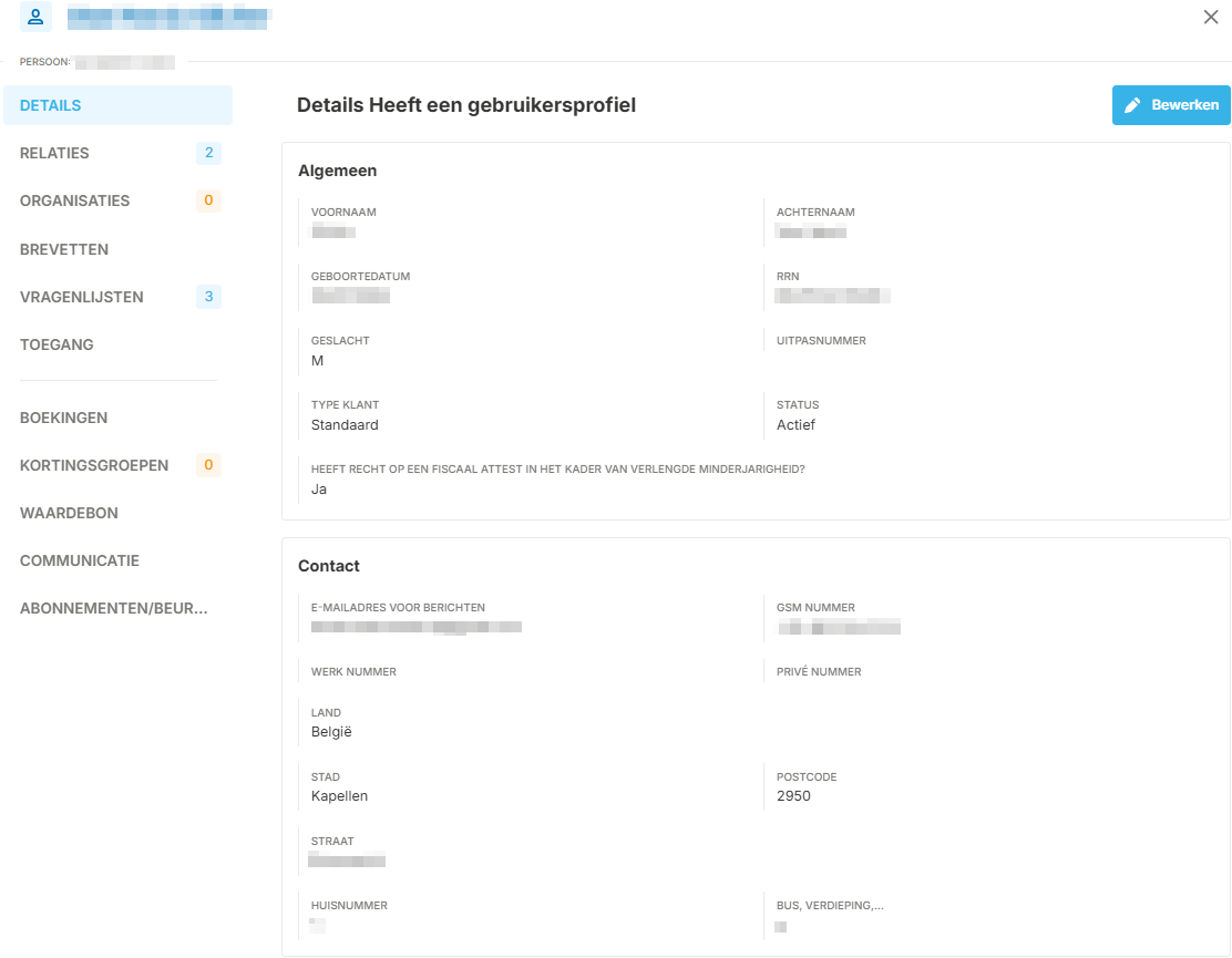 Op de detailpagina van een persoon krijg je een overzicht van alle informatie van de persoon