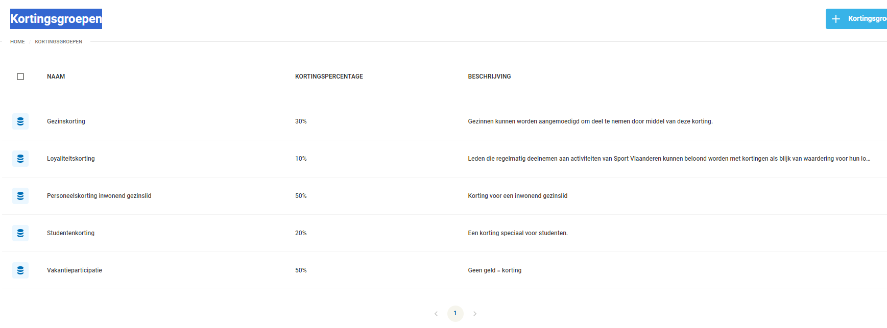 - Hier kan je de verschillende kortingsgroepen beheren.