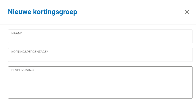 - Klik op +Toevoegen om een kortingsgroep toe te voegen.