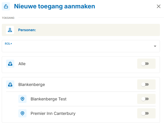 Elke actieve medewerker heeft toegang tot één of meerdere locaties, maar krijgt slechts één rol per locatie toegewezen.