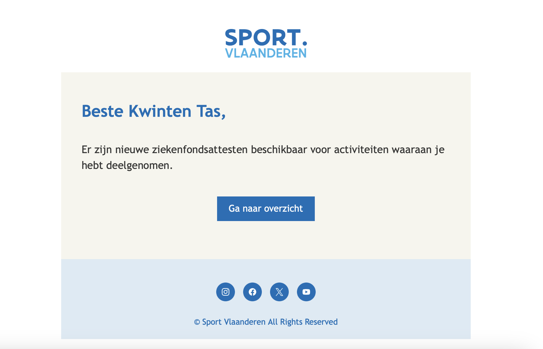 Ziekenfonds attesten worden automatisch gegenereerd één week na het eindigen van een sportkamp of sportles. Deze attesten worden gebaseerd op de aanwezigheden die zijn ingegeven bij de periode van de activiteit.