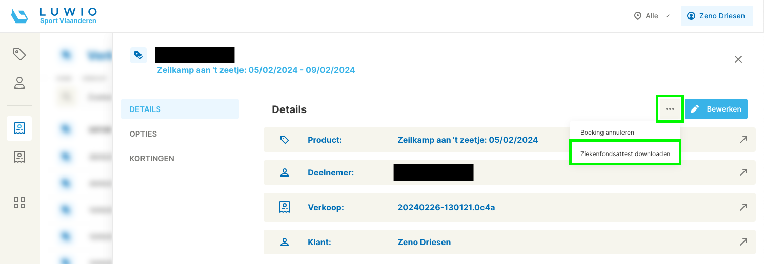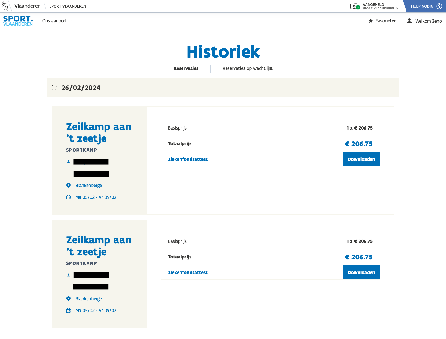 - Op deze pagina kan de klant het ziekenfonds attest per deelnemer downloaden.