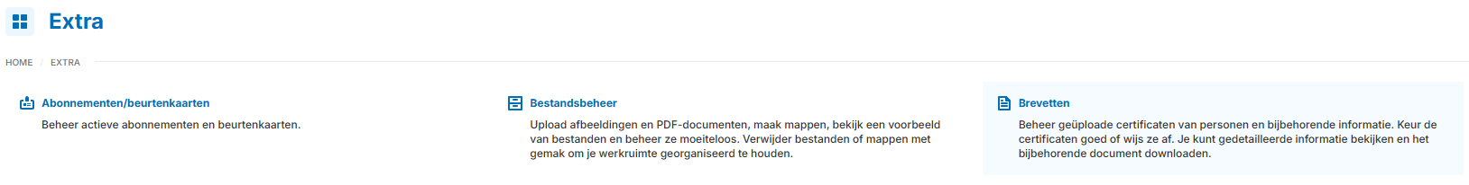 Nieuwe brevetten die worden geüpload, moeten worden goedgekeurd door een medewerker. Dit kan worden gedaan via de aanvullende module Brevetten.