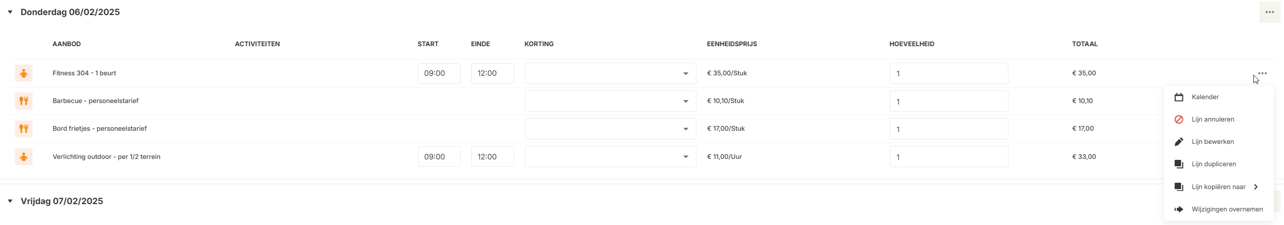 - Pas een lijn aan (startuur, einduur, hoeveelheid, ...).