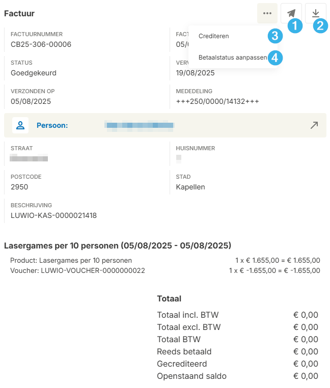 - Crediteren: Mocht de factuur foutief zijn, kan je deze crediteren.
