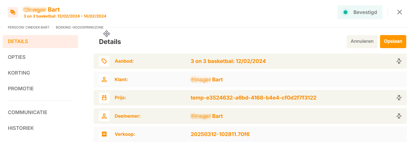 Open de boeking: Ga naar de boekingsdetails van de deelnemer.