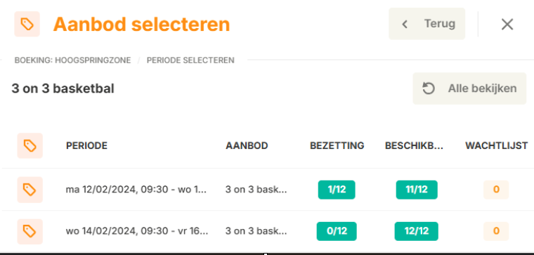 - Wijzig het aanbod: Klik op de lijn bij Aanbod om de sessie te wisselen.