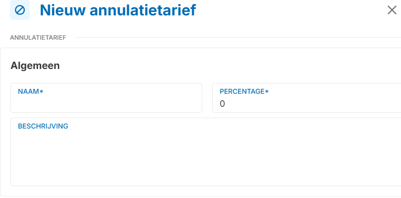 - Geef je annulatietarief een gepaste naam, beschrijving en percentage