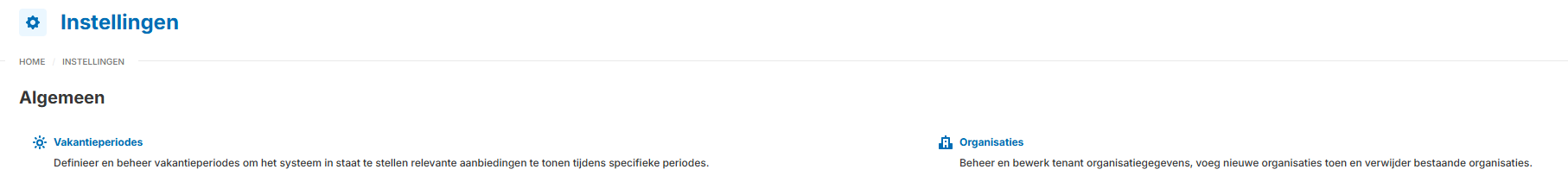 Je kan de organisaties vinden onder het tabblad Instellingen.