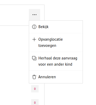 Dit kan ook nog achteraf beslist worden door de ouders. Bij het aanvraag zelf kan de ouder op de 3 puntjes van een aanvraag klikken en dan herhaal deze aanvraag voor een ander kind selecteren
