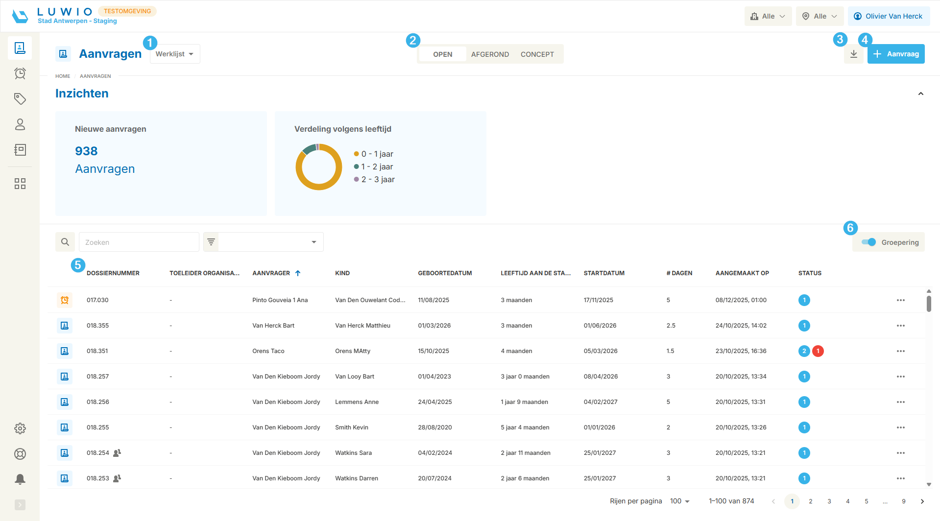 Via de werklijst kan je de openstaande aanvragen verwerken en de afgeronde aanvragen raadplegen.