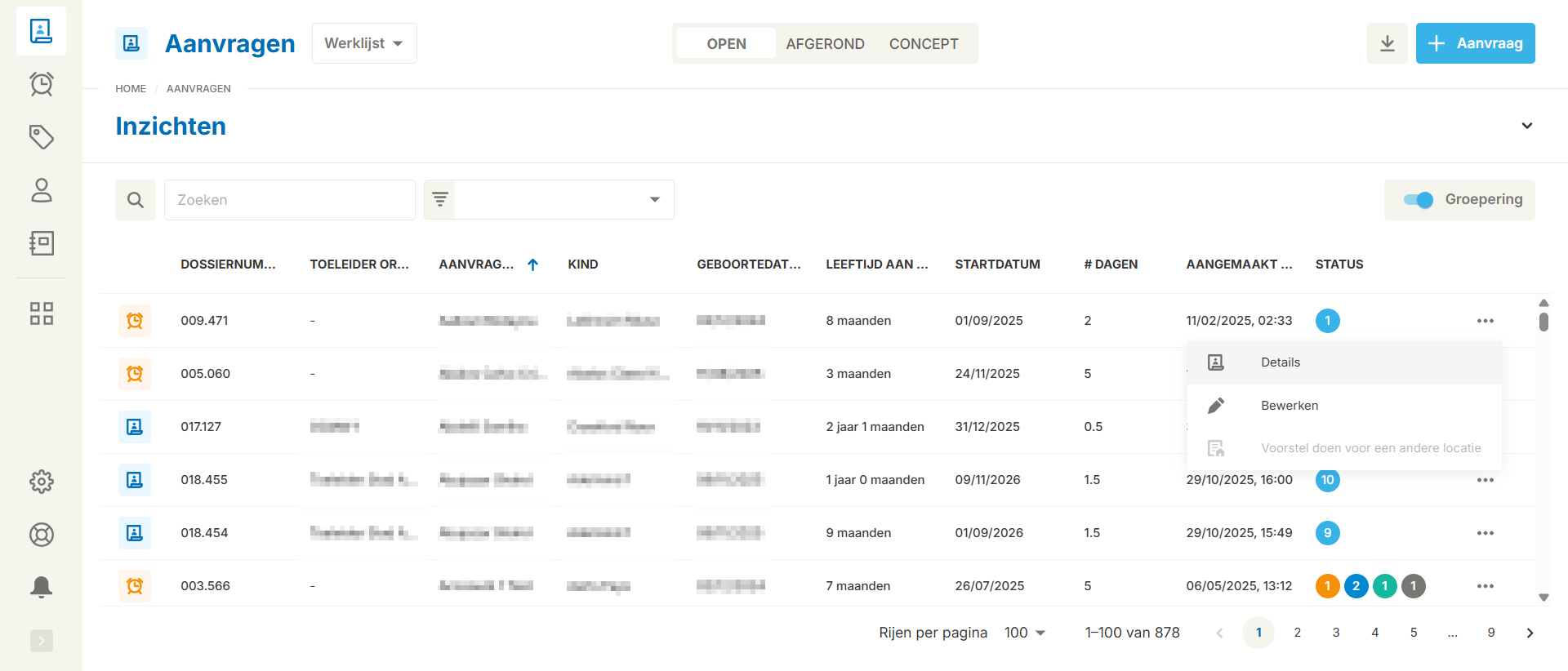 Via de backoffice kan de medewerker alle ingediende aanvragen raadplegen. De medewerker zoekt de juiste aanvraag op, bekijkt de details en verwerkt deze verder waar nodig. Zolang de aanvraag nog niet is afgerond, kunnen aanpassingen worden gemaakt of aanvullende informatie worden toegevoegd.