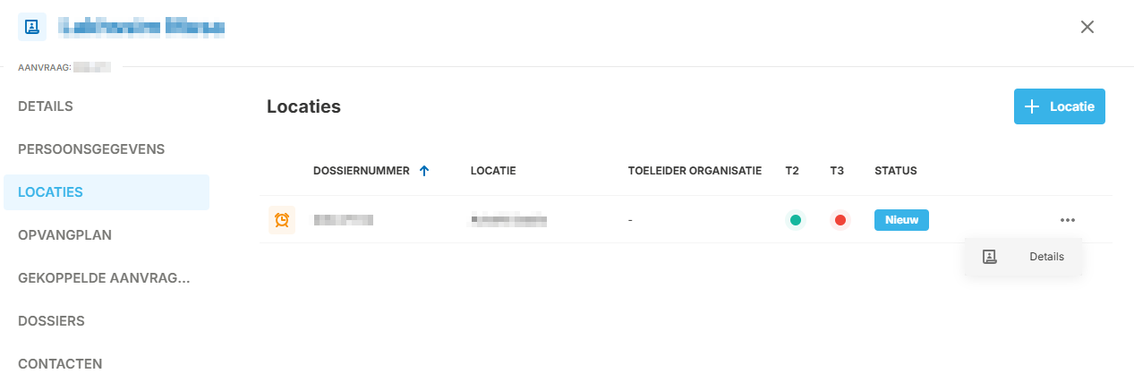 - Annuleren: De aanvraag voor deze locatie annuleren