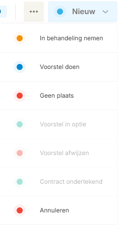 - Voorstel doen: Een voorstel sturen naar de klant die de klant moet goedkeuren of weigeren