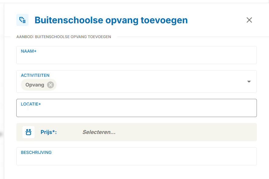 - Voeg de prijs toe voor opvang tijdens jaar (prijs per half u)